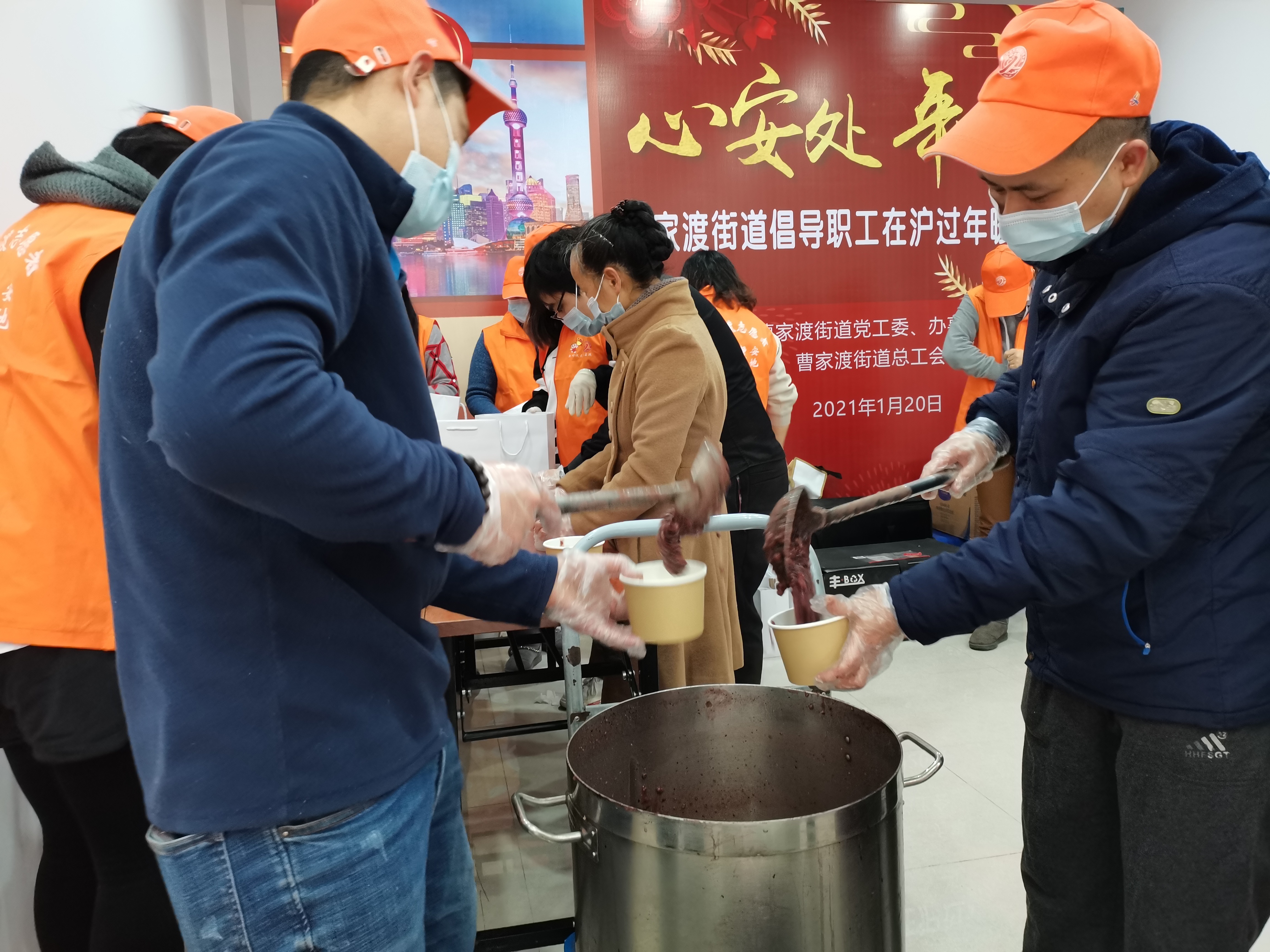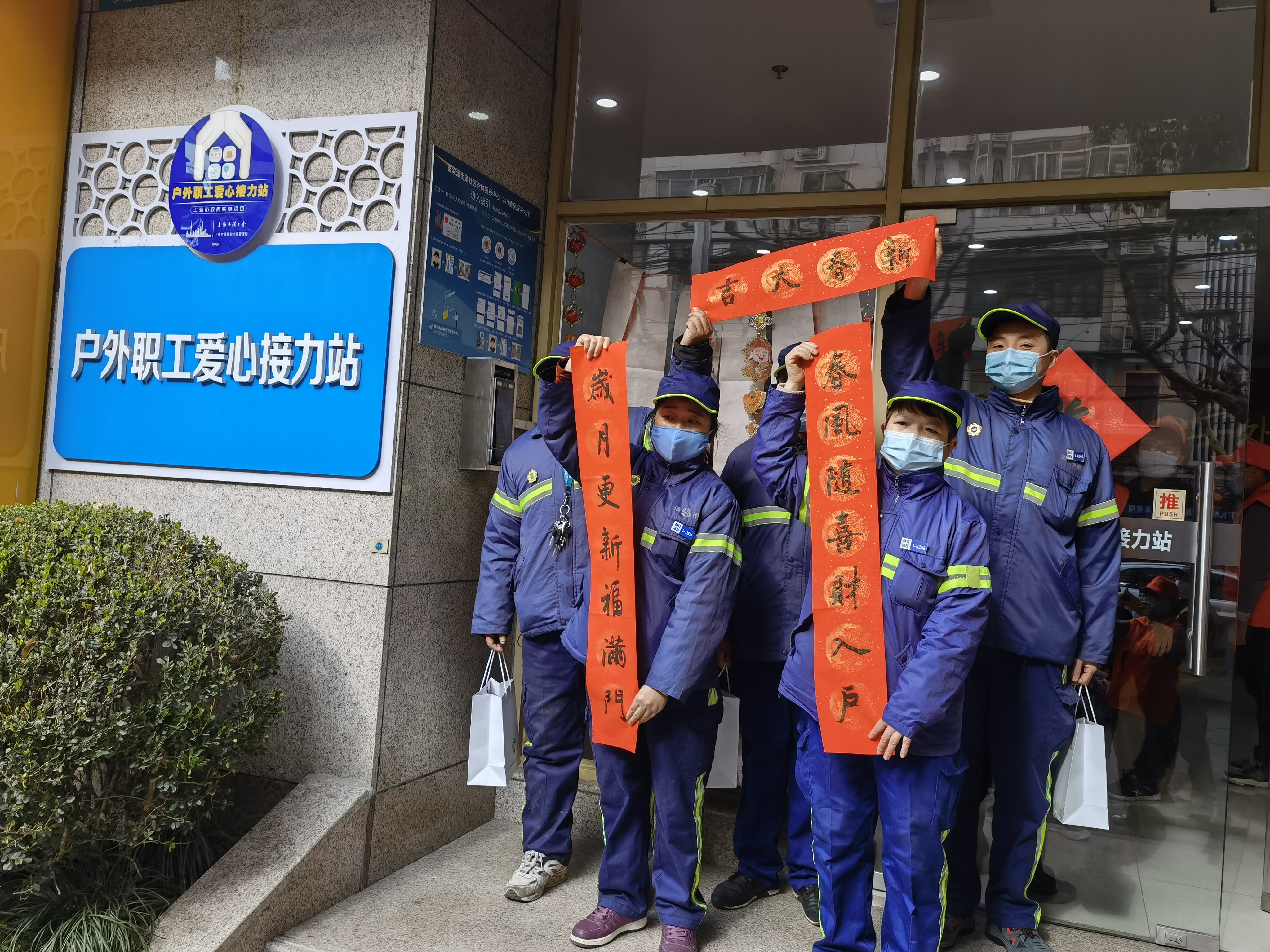 1月20日,曹家渡街道在街道户外职工爱心接力站举办“心安处,年味足”曹家渡街道倡导职工在沪过年暖心活动。