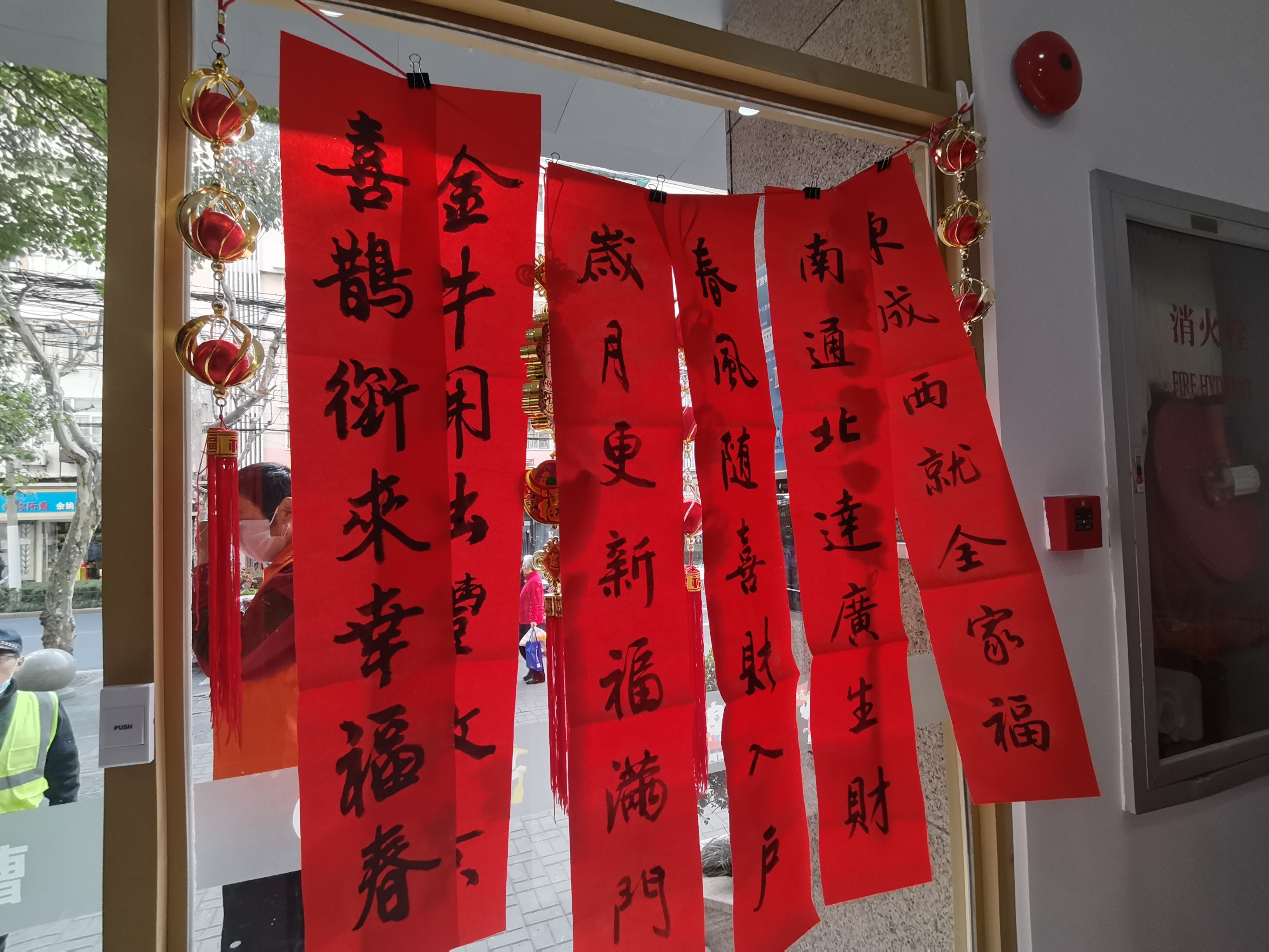 街道总工会、妇联、统战条线也组织书法家们为楼宇职工、社区居民等写春联送祝福,并由街道机关第一党支部和街道党群中心的党员志愿者们将这些充满温情的关爱送到居民区和楼宇。