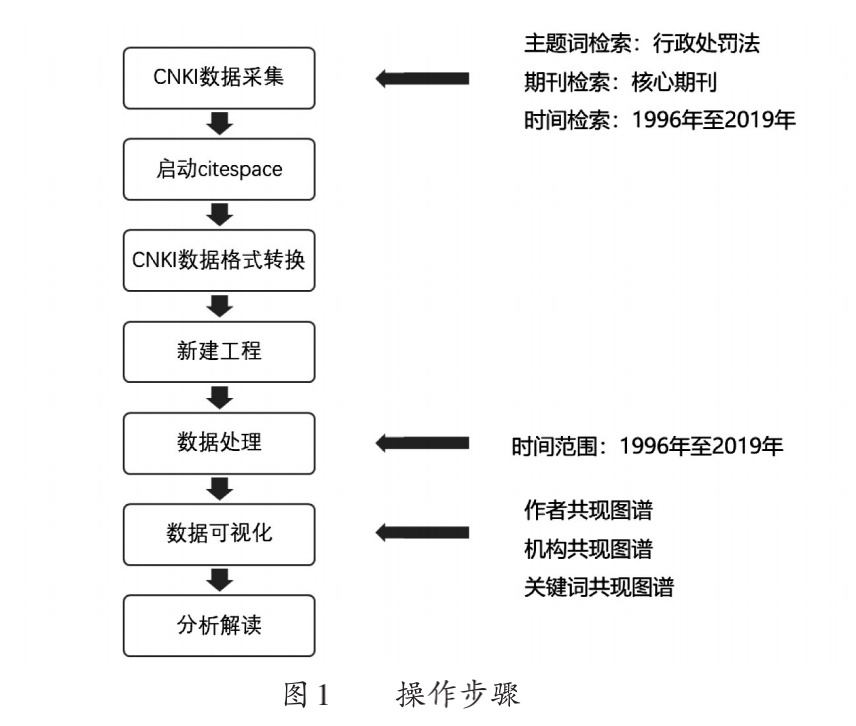 2018年9月7日,《十三届全国人大常委会立法规划》将行政处罚法(修改)列为“条件比较成熟、任期内拟提请审议的法律草案”,也即行政处罚法修改已经明确提上国家立法机关的议事日程。1996年3月17日,《中华人民共和国行政处罚法》(以下简称行政处罚法)在第八届全国人民代表大会第四次会议上通过,并于当年公布,施行。行政处罚法自制定实施以来,在一定时期内发挥了重要作用,曾于2009年和2017年分别进行了两次较小的修改。目前,我国法治现代化进程加快,社会治理呈现出新特征、新模式,构建完善的现代化法律体系形势愈加紧迫。政府进行行政管理的环境与二十多年前相比发生了巨大的转变,行政体制改革深入推进,建立权责统一、权威高效的行政执法体制贯穿改革全程,行政执法面向基层,综合执法稳步推进,跨领域跨部门综合执法深入发展,执法重心下移。风险社会带来更多挑战,各种不确定性因素极大增加,人的行为对社会产生的影响空前增大,人的决策和行为所产生的风险也随之大幅度增加。新时期,修改行政处罚法的呼声越来越强烈,行政处罚法修改势在必行。显然,通过修改行政处罚法,聚焦实现行政处罚法从“处罚”导向向“处罚+预防化解”导向转变,在明确权力价值的基础上进一步优化制度安排,可以进一步促进政府依法行政和严格执法,规范政府行政处罚权力的行使,防止权力滥用;与此同时,审慎考虑风险社会的各种风险,回应人们对于社会安全的需求,注重法益保护,防患于未然,转变以惩罚、制裁为主的观念,增加预防预警功能,可以更好地满足公众对于秩序安全的心理需求。当前,国内理论界和实务界关于修改行政处罚法的研究和相关实践持续深入,学术研究成果和创新实践经验丰富,但是通过综述性分析工具全面反映行政处罚法修改研究的文献尚未发现,是为研究之不足。本文尝试通过使用citespace可视化工具,对现有学者关于行政处罚法修改的研究文献进行分析,以期较为科学地综述行政处罚法修改的主要方向及其争议,助推行政处罚法修改及其研究的深化。