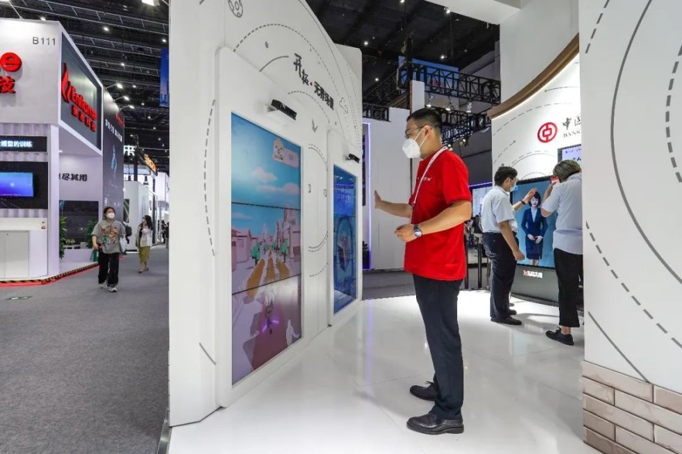 作为大会的“老朋友”,中国建设银行带来了讲解员数字化互动迎宾、数字人多场景演绎、金融元宇宙入口触发、建行金融城线上线下交互体验等体验。
