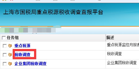7.点击申报辅助信息报告,选择第三项“税收调查”,点击进入。