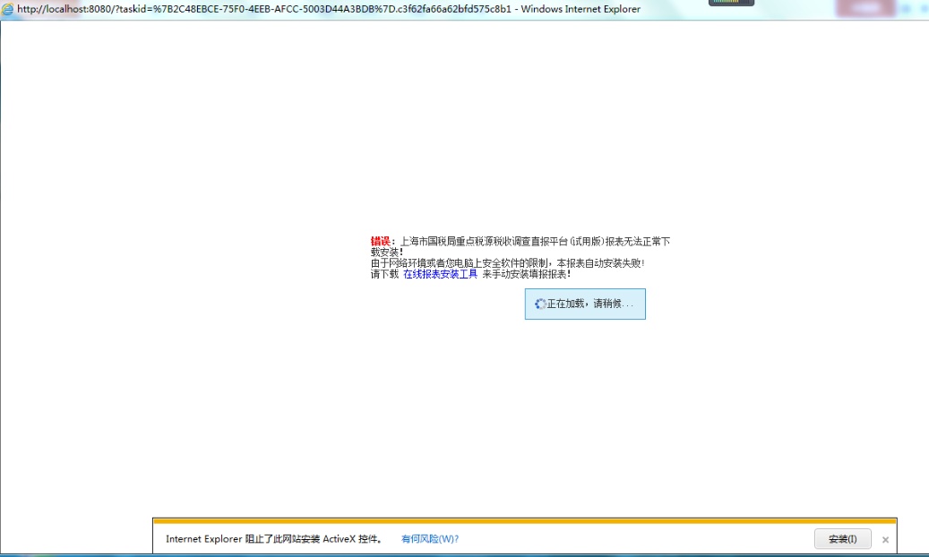 在线插件安装成功后,系统将从服务器上下载报表任务,并在IE窗口中打开报表任务。