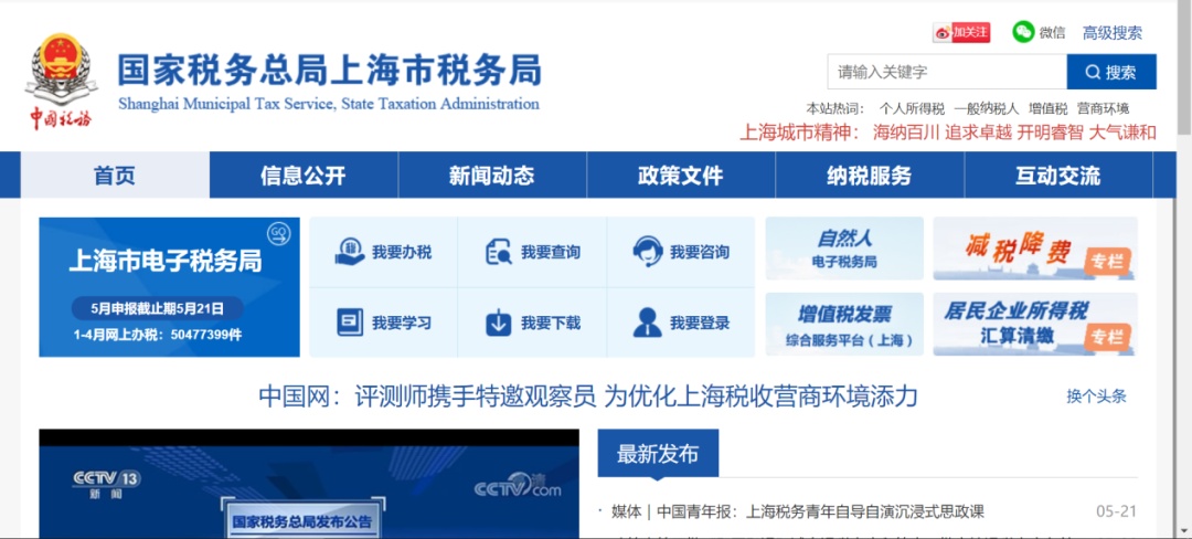 访问地址http://shanghai.chinatax.gov.cn进入国家税务总局上海市税务局网站。