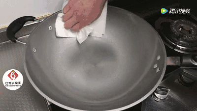 6、冷却后用纸巾将锅内的冷油擦干净。