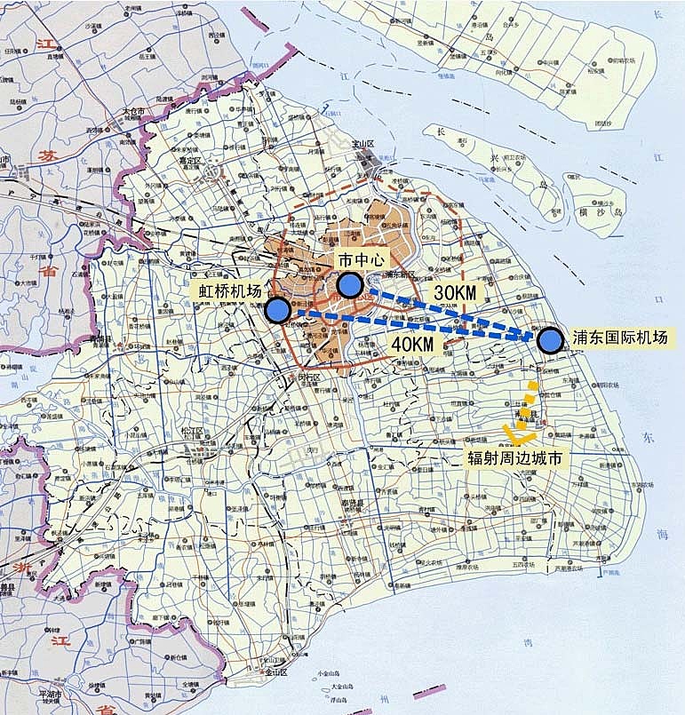 浦东新区带动了上海国际交往和旅游事业发展,规划第二个国际机场势在必行。