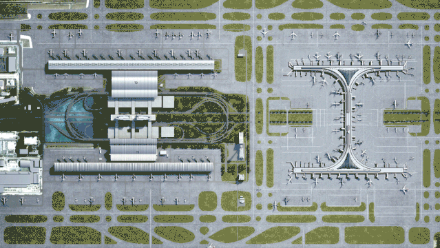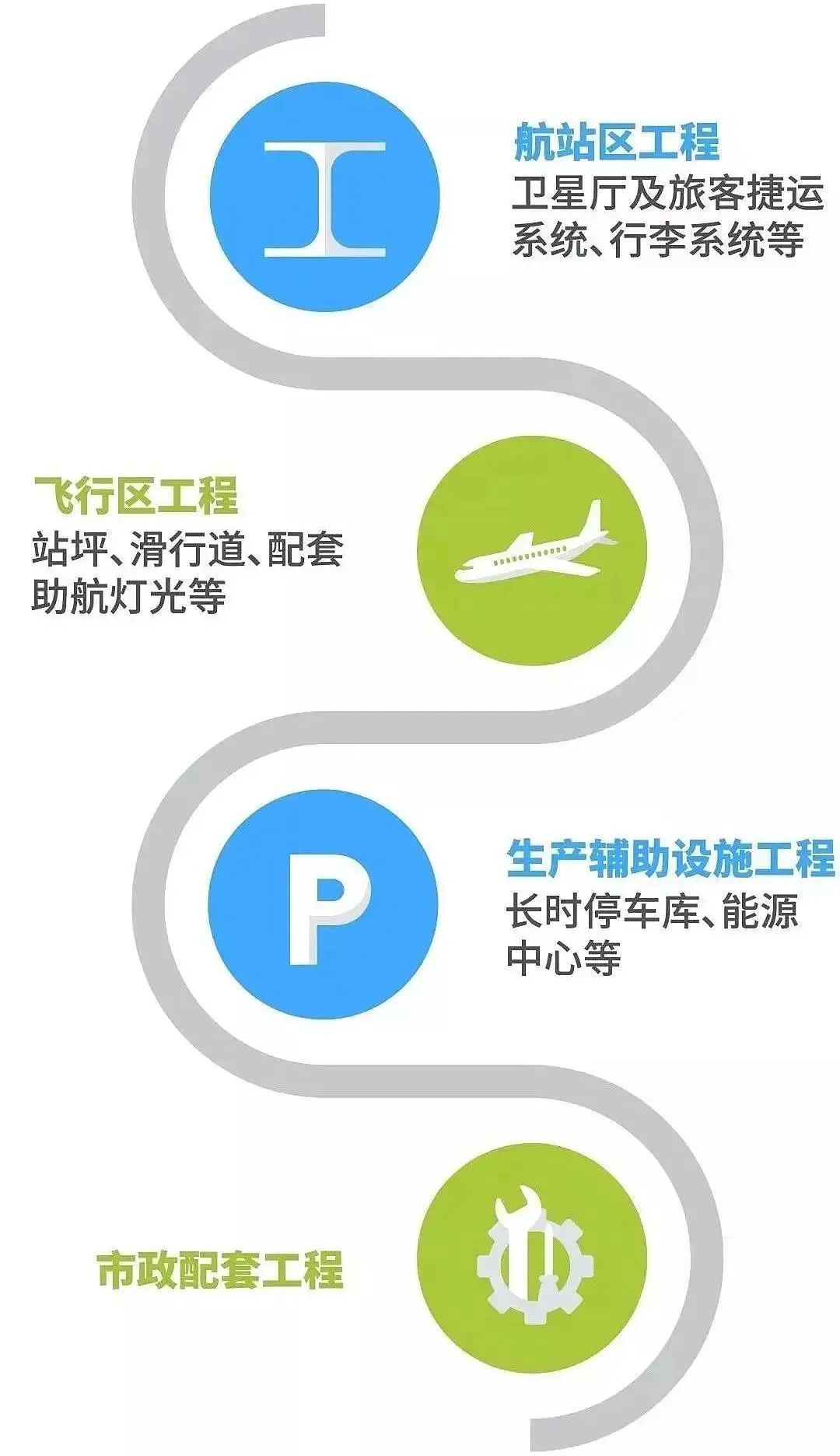 62万平方米的卫星厅及其捷运系统、95万平方米的港湾停机坪是最核心的工程。