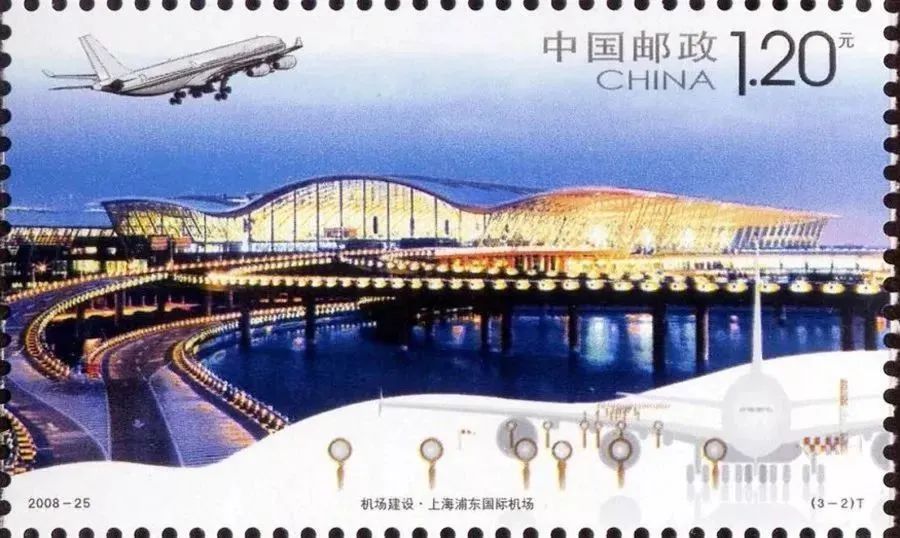 2008年,为祝贺浦东国际机场二号航站楼投入使用而发行的特种邮票。