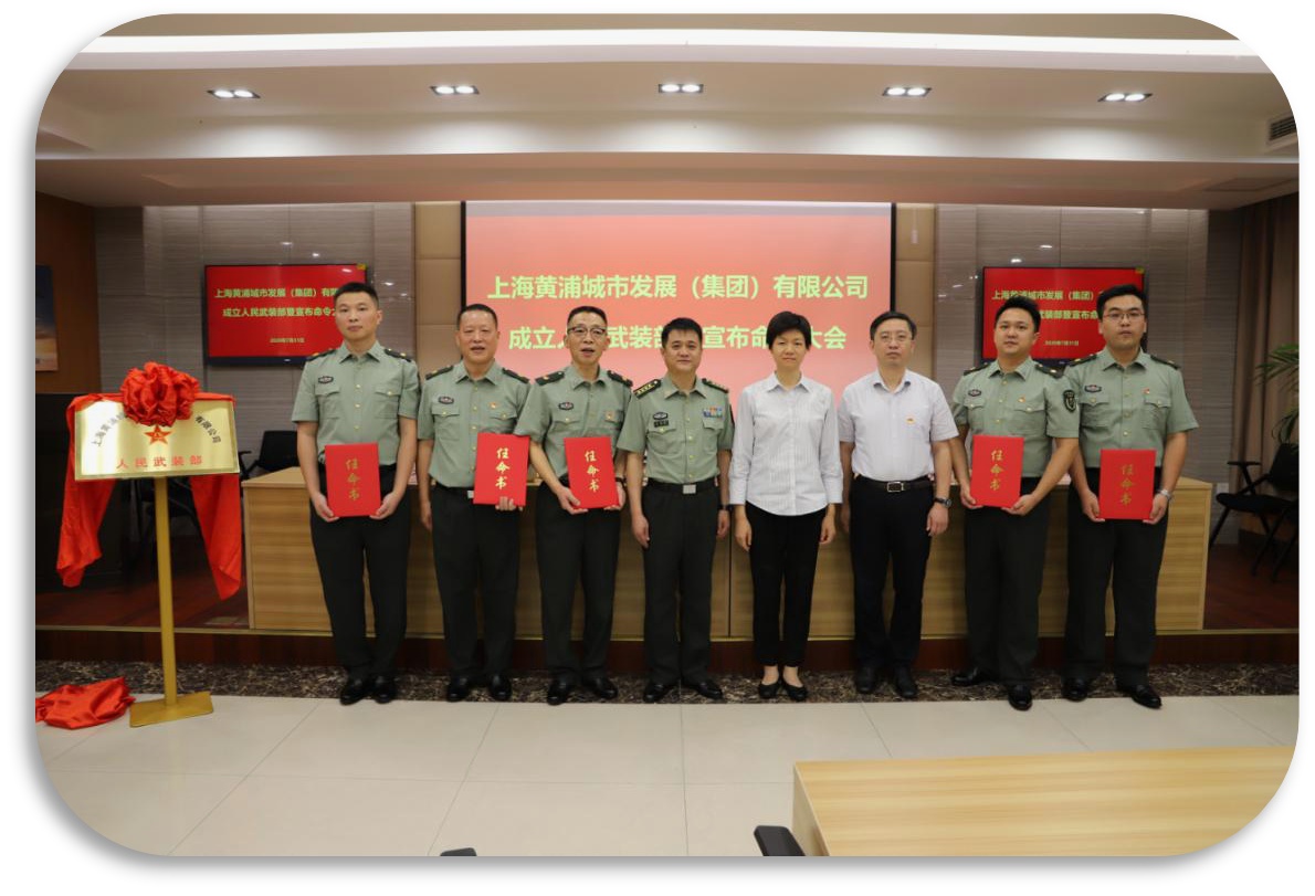 据了解,城发集团作为黄浦区新组建的区属企业,积极履行国防义务,扎实开展国防动员工作,根据《关于加强新时代党管武装工作的意见》和《上海市基层人民武装规范化建设实施方案》,向区人武部递交了集团成立武装部的请示,后经区委、区政府、区人武部研究决定,同意城发集团设立人民武装部。