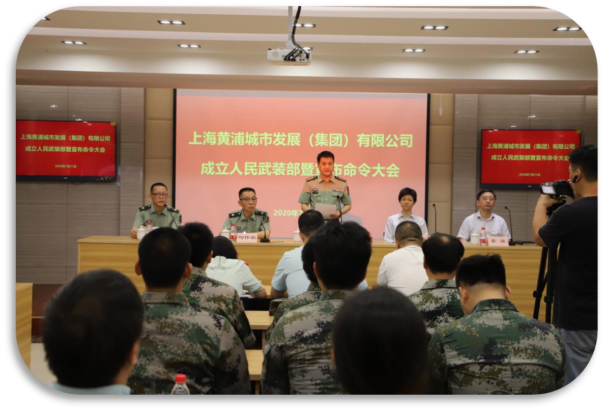 企业成立武装部,对加强党管武装工作、推进国防后备力量建设、完善基层人民武装体制机制、促进企业全面发展具有十分重要的意义。7月31日下午,我区召开上海黄浦城市发展(集团)有限公司(以下简称“城发集团”)人民武装部成立暨宣布命令大会。