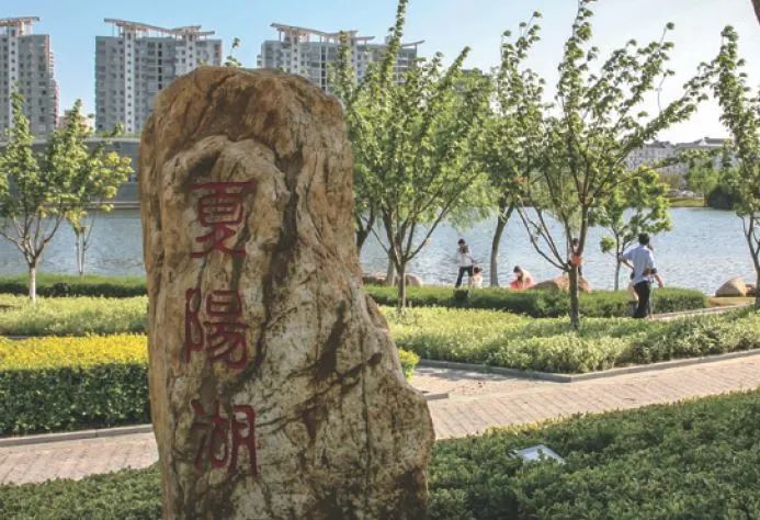夏阳湖是一个城市里的人工湖,位于夏阳街道的北部,东岸是青龙路绿地,西岸为华青南路,南岸也是青龙路,有建在湖上《青浦图书馆》,湖北是江泽民题字的《崧泽广场》和陈云题字的《青浦博物馆》。与章浜河、黄沙浜相通。面积8.67公顷(130亩)。2003年3月由青浦新城建设发展有限公司实施开挖工程,于2004年11月完成。具有蓄洪、休闲、景观、生态等功能。因所在地为原环城镇夏阳村,故以村名命湖名。那么夏阳村的村名又是从何而来的呢?