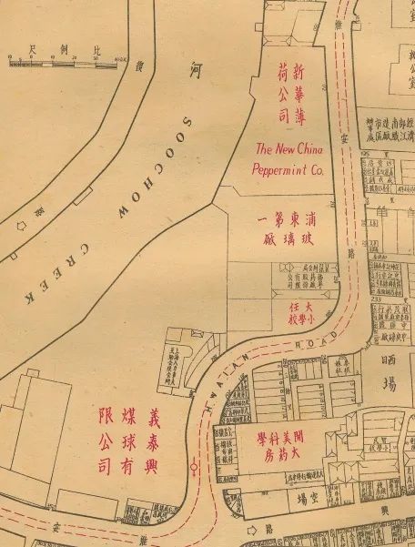 蝴蝶湾老地图的另一翼,记录着新华薄荷公司的名字,这又牵扯到上海食品添加剂行业的一段发展史,按下不表。苏州河边的生产锈带早已转变为生活秀带,而一段段记忆还未远去。