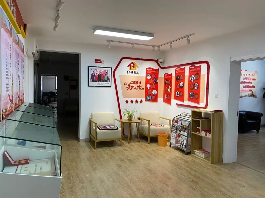 红旗家苑党群服务站总面积约600平方米,镶嵌于居民楼,位于底楼,由原来的居民活动室改造而成。