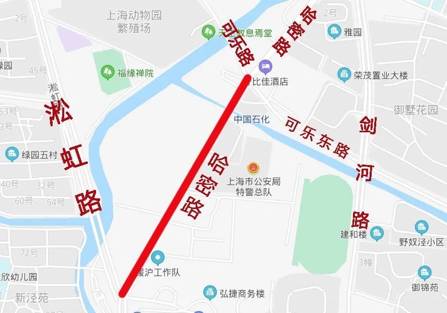 原过境车辆需通过淞虹路、剑河路等周边路网进行绕行,从仙霞路去往福缘禅寺的车辆可往可乐路绕行至淞虹路。同时,哈密路(淞虹路至仙霞西路)将留出7.5米通道,供沿线单位、小区车辆进出。