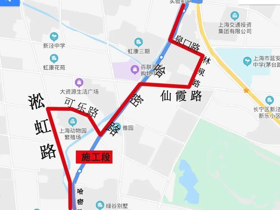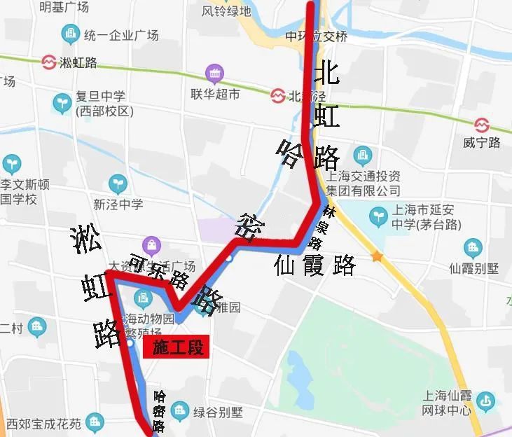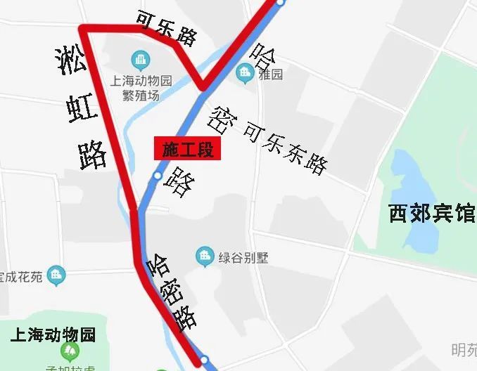哈密路(可乐路至淞虹路)(标红部分)为施工段