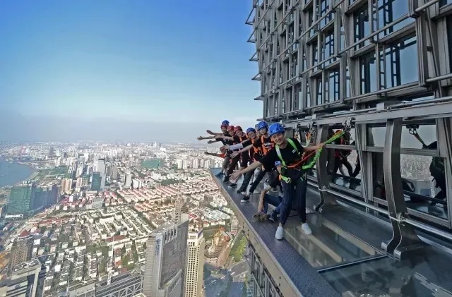 上海金茂大厦88层观光厅户外无护栏玻璃步道。高度达到惊人的340.6米,比张家界的玻璃桥高出至少40米!