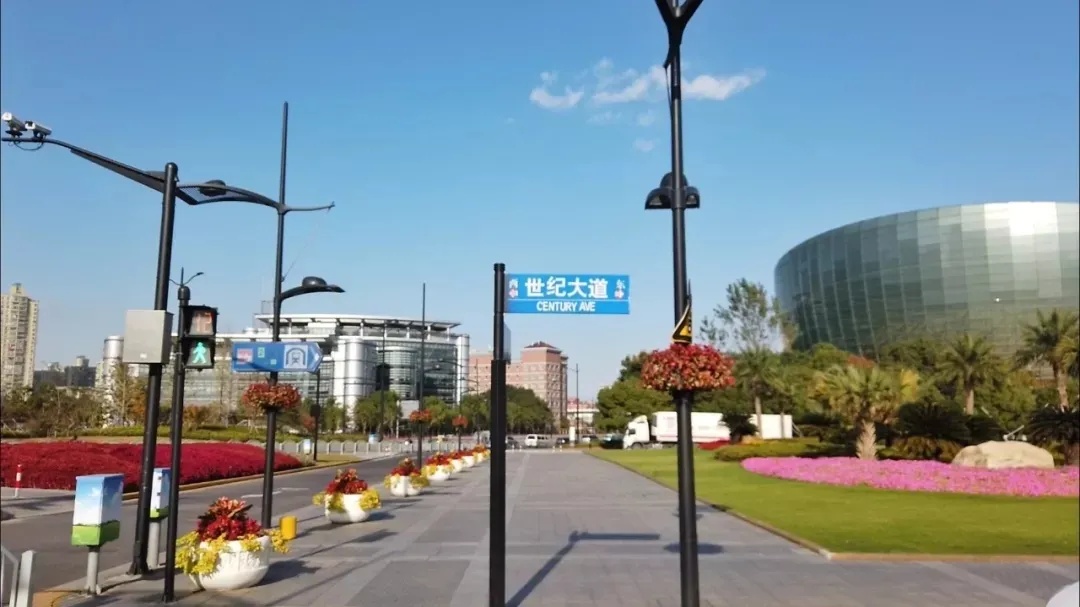 世纪大道。从东方明珠至浦东世纪公园全长约5.5公里,宽100米。西起东方明珠,陆家嘴环岛,东至浦东新区行政文化中心,被誉为“东方的香榭丽舍大街”。