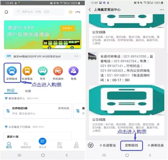 市民可以通过“嘉定行”app、“嘉定客运”微信公众号购票。