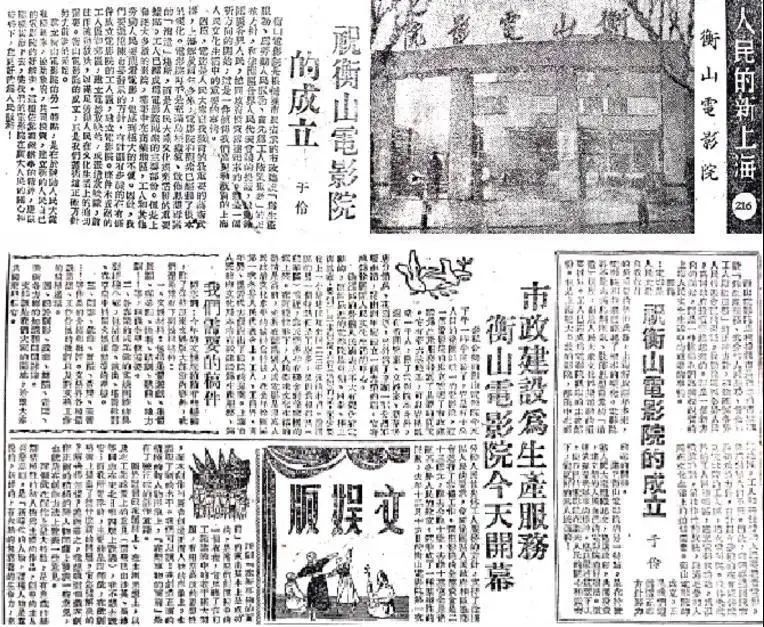 上海人耳熟能详的“衡山电影院”位于衡山路838号,筹建于1951年。衡山电影院是上海解放后第一家采用民间集资和国家投资相结合建造的电影院。1952年1月5日,衡山电影院正式开业。2015年,衡山电影院被公布为上海市第五批优秀历史建筑。