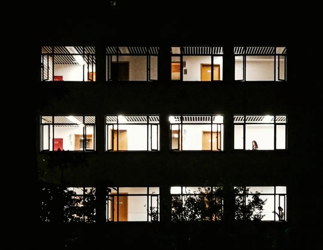夜晚,长明的路灯下偶尔有人重复练习着明天pre的发言稿,一楼宿管阿姨总是笑盈盈地朝你问好,悉心照料着楼下几盆好像永远也长不大的绿植,小黑板上总是被写的密密麻麻。楼梯转角处常常是与父母通话的地方,那里也许藏着一些琐碎熨帖的家常关切吧。