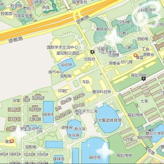 国字路和政字路在此纵横交错,人名路由此辐射四散。我们的故事,就从五角场西延出的邯郸路讲起。这条东西向的道路穿复旦校园而过,将它分成南北两边。