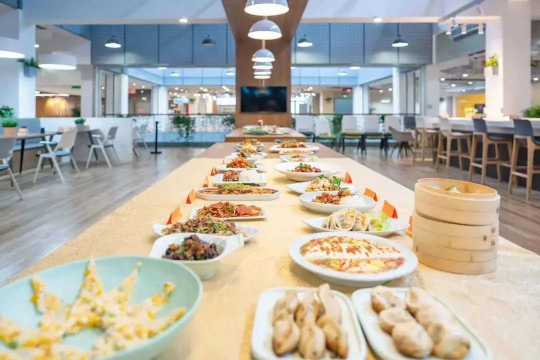 什么,不去旦苑?那也行,北区食堂绝对能满足你。今年刚翻修过的它地处北区中央,与亚青比肩而立,外有小桥流水,星空吧台,里面更是大有乾坤:学习区休闲区就餐区烹饪体验区一应俱全,中庭更有四棵景观树赏心悦目,开天窗,享受自然光,无油烟,只有饭菜香,来北食,四海任你尝!