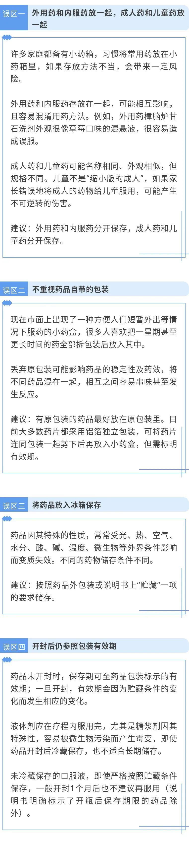 错误的贮藏方式常常影响药物的稳定性和有效性,加速药物变质或降低疗效,尤其是已打开包装、但还没用完的药物,更要妥善保存。