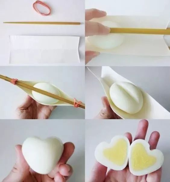 3.最后把鸡蛋竖着切下去,一颗心型煮蛋就完成了!
