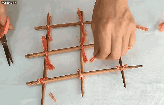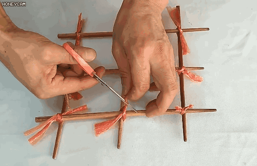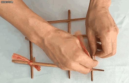 3.用绳子或者纱布,将每个交叉点绑好;