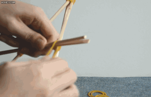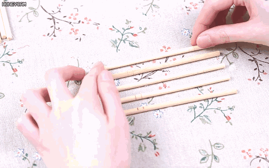 4.最后,再用一根筷子捆绑在它们旁边,增加宽度;