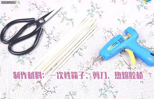 材 料 剪刀、热熔胶枪、筷子