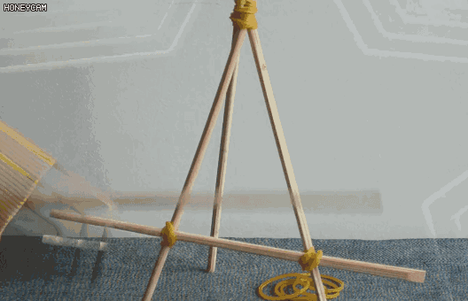 3.接着再用一根筷子横着捆绑在三脚架的任意两根上;