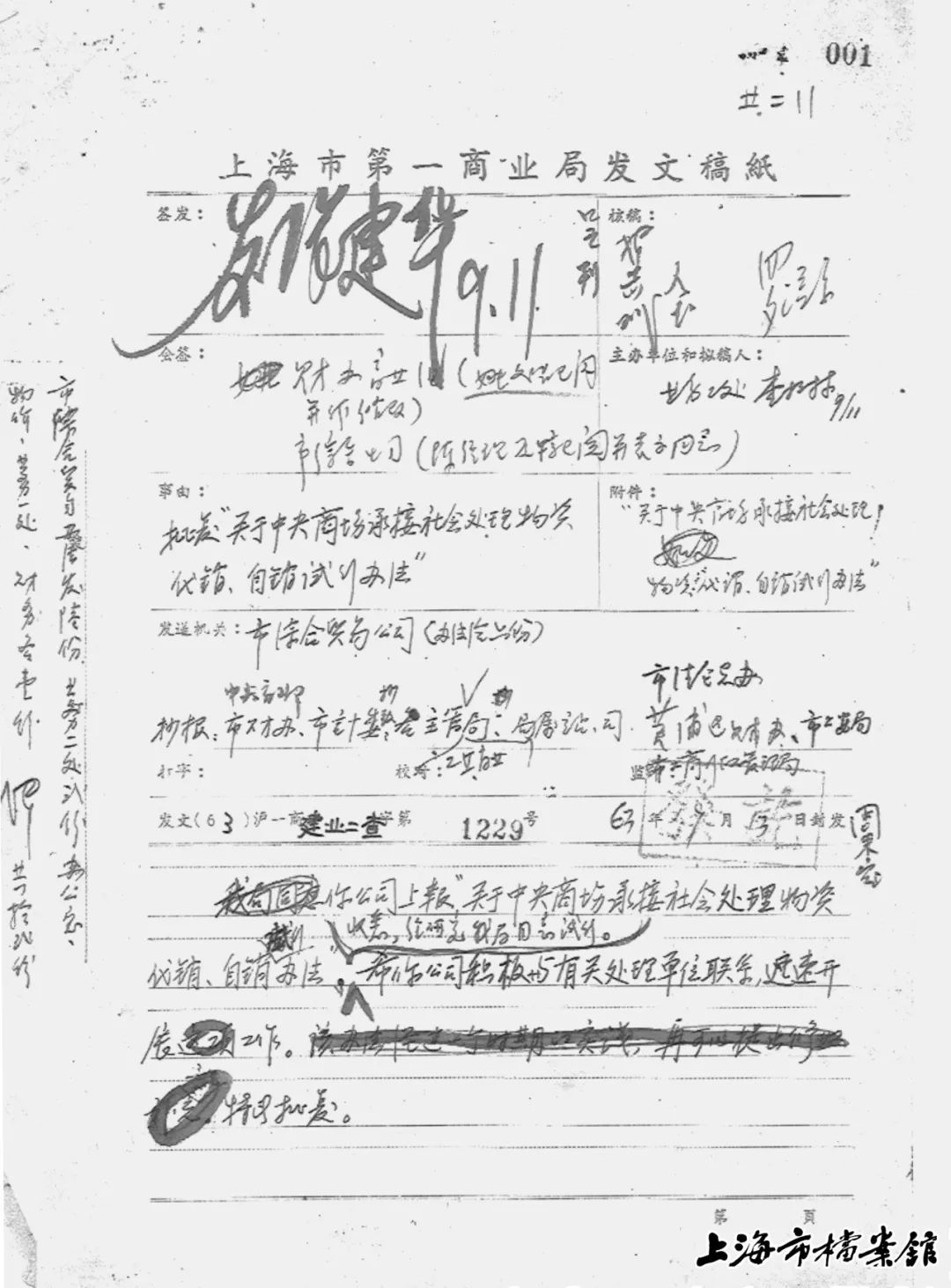 1963年,上海市第一商业局关于同意中央商场承接社会处理物资自销试行办法的批复(上海市档案馆藏)