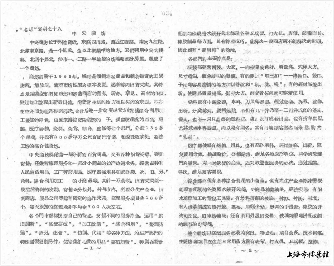 1964年,上海名店介绍之《中央商场》(上海市档案馆藏)