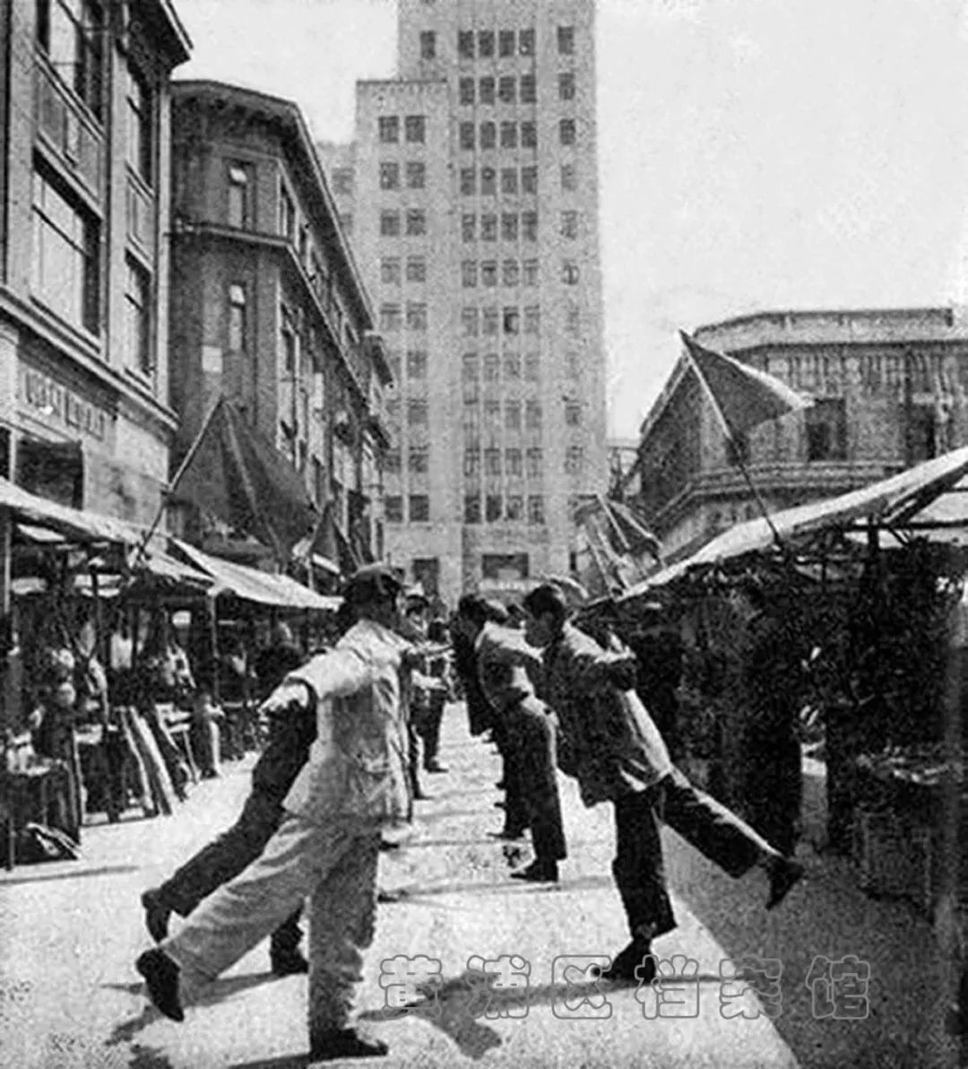 1950年代,中央商场摊贩早晨做广播操