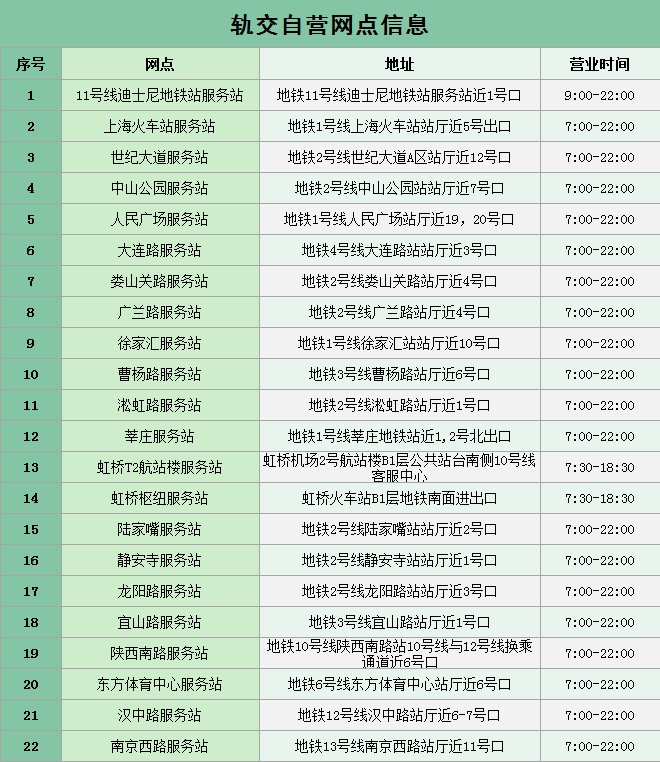 交通卡地铁22个自营网点