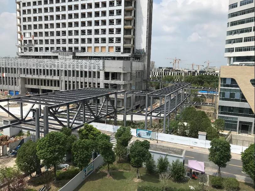 连廊工程位于上海新虹桥国际医学中心园区内,串联起医技中心与各家医疗机构,实现了医学中心内部空间的便捷通行,提升了医疗服务效率,给患者就诊带来方便的同时,更提升了服务品质。项目计划于2021年一季度部分交付使用。