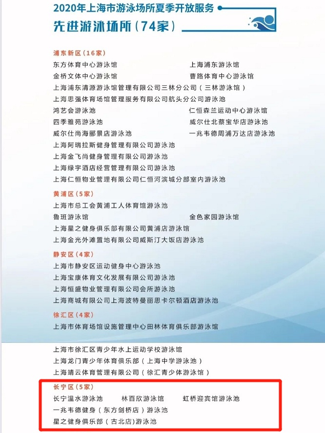 此次,长宁区共有五家单位获得“先进游泳场所”称号。