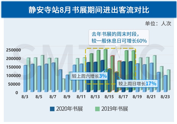 2020上海书展暨“书香中国”上海周于8月12日至18日,在上海展览中心举办。上海书展带动了静安寺站客流小幅上升。