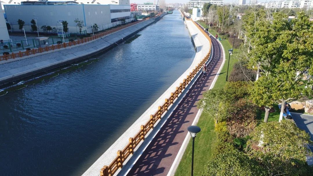 2017年实施江场河景观提升工程,通过水下、水面、岸坡水生态措施的构建,实现了河道水清、岸绿、景美的环境面貌,现已被评为二星级河道。