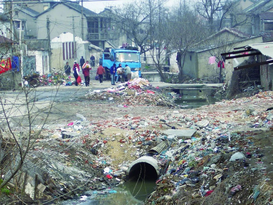 2004年以前,中扬湖两岸违章搭建现象严重,外来人口聚居于此,各种垃圾粪便随意丢弃倾倒在河里,导致河道常年黑臭,淤积现象严重,环境十分恶劣。