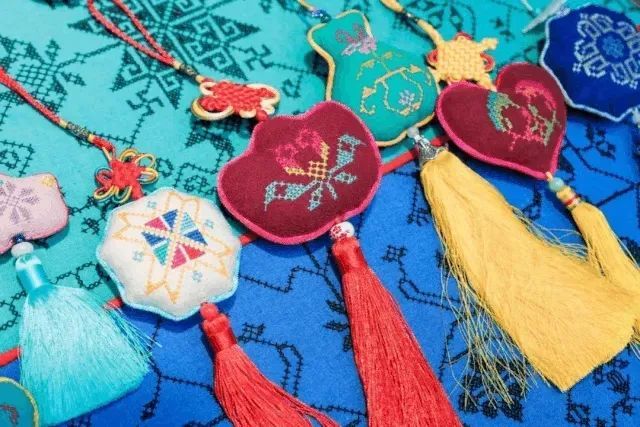 罗泾十字挑花作为农耕文化的产物,生于乡土之间,能在民间流传三百余年,经一双双勤劳而灵巧的双手打磨传递,在现代生活中仍然经得起回味,其魅力可见一斑。十字挑花,从过去多用于兜头巾、系身沟擦脚、围身等实用的生活用品装饰,延展到今天用于抱枕、香囊、杯垫等礼品,和它独特的工艺特点密不可分。