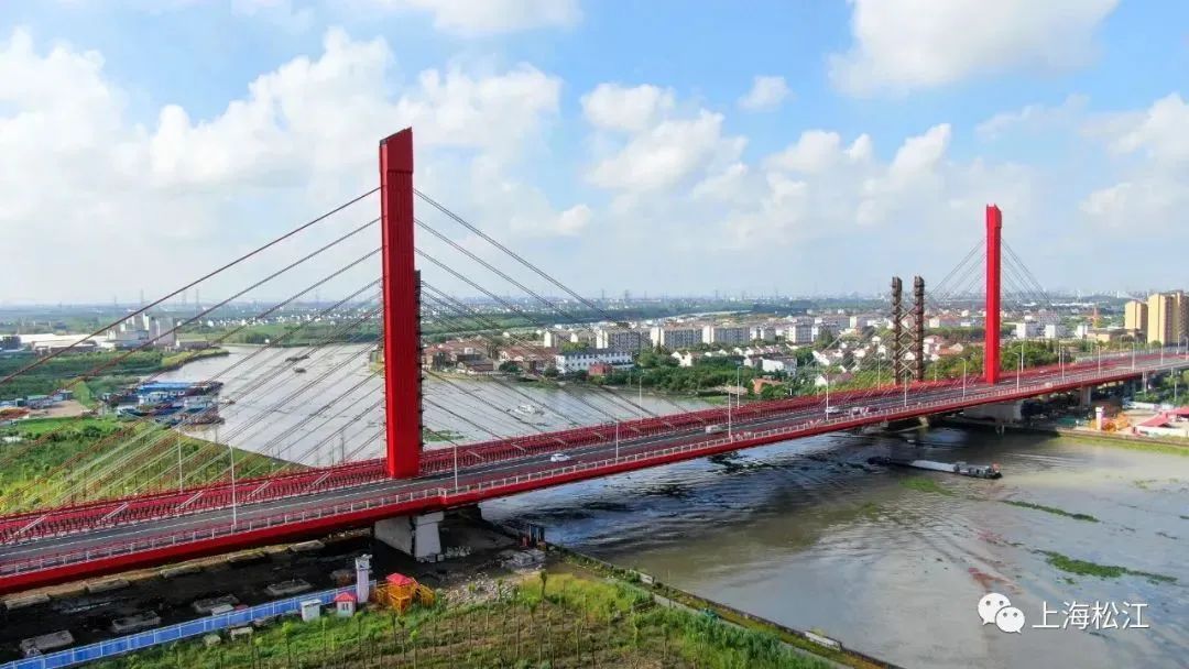 如今,紧靠泖港老桥北侧、朱红色的泖港大桥新桥已于上月部分通车。