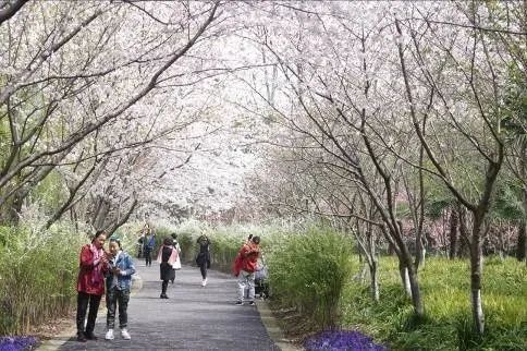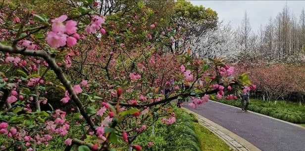公园四季花草盛开,千米花道樱花、海棠等最为有名,四季皆为拍摄的场所。