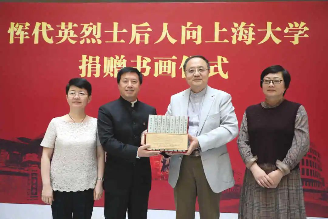 随后,恽代英烈士后人代表恽梅、恽清、恽铭庆向上海大学捐赠《恽代英全集》。