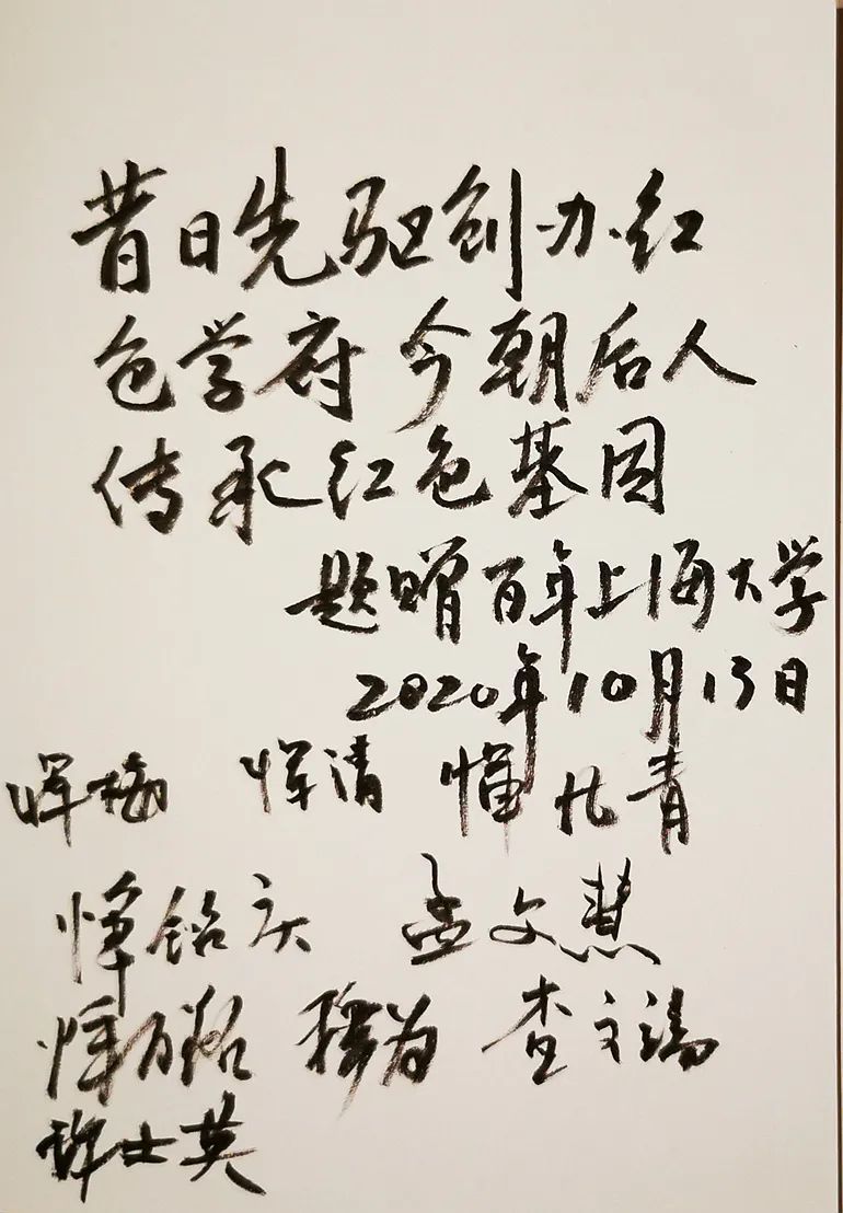 上海大学党委副书记、校长刘昌胜代表学校接受捐赠,并向恽代英烈士后人回赠《百年上大画传》,成旦红书记与刘昌胜校长共同签名,纪念上海大学红色教授恽代英。