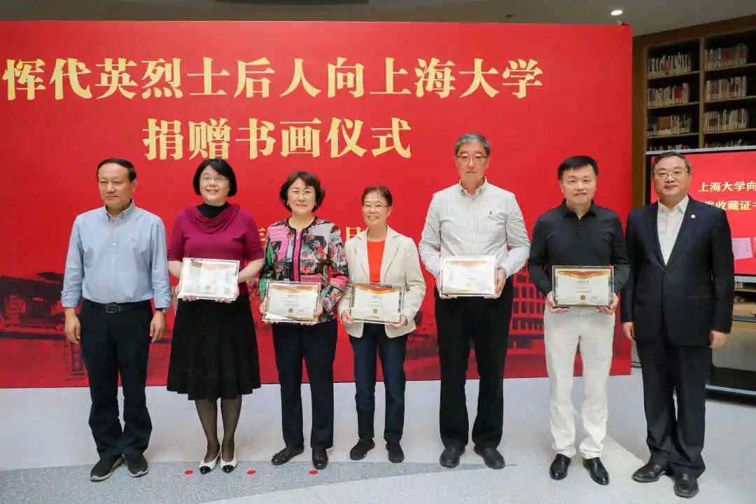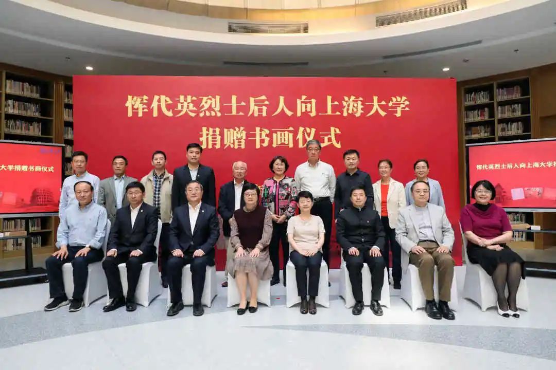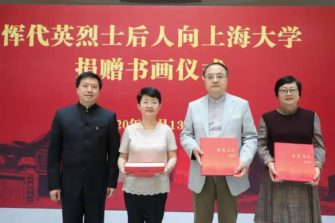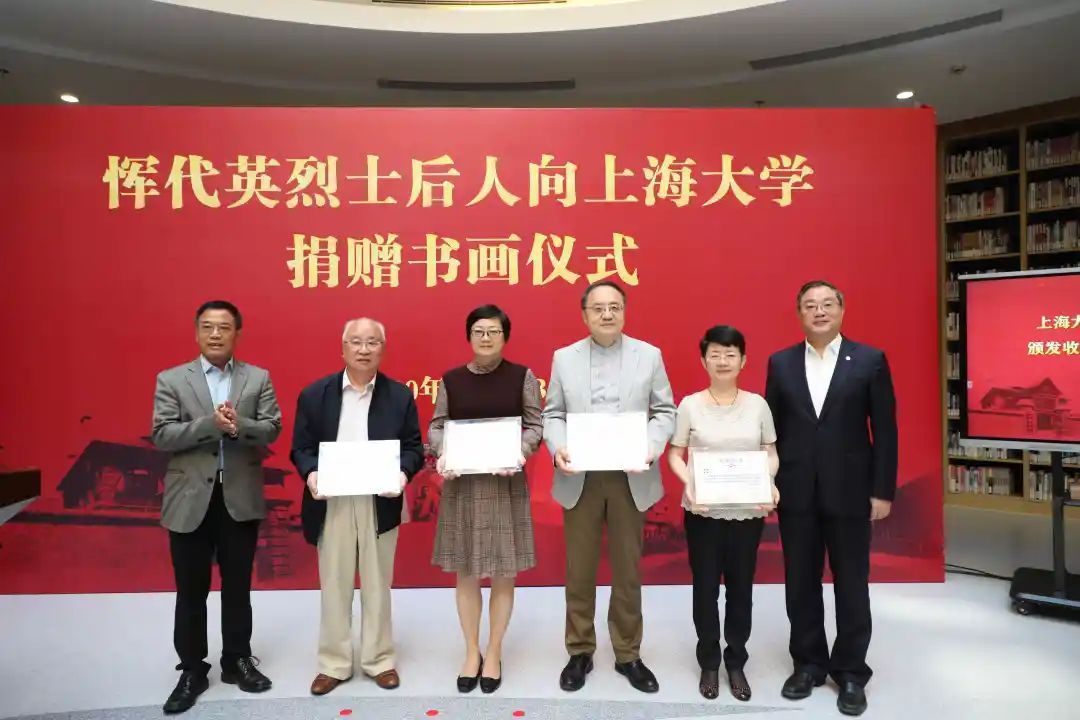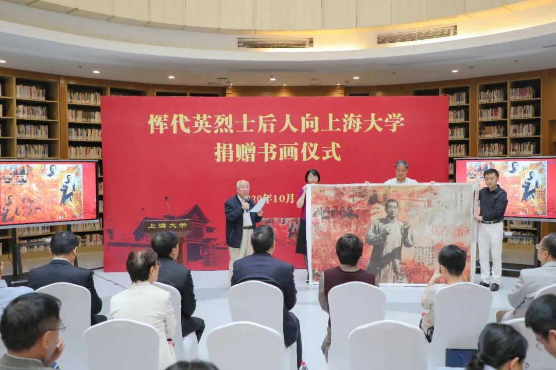 2020年10月13日,恽代英烈士后人向上海大学捐赠书画仪式在上海大学钱伟长图书馆校史馆举行。恽代英烈士后人孙女恽梅、穆为夫妇,孙女恽清、查文端夫妇,侄孙女恽凡青,侄孙恽铭庆、孟文慧夫妇,内侄恽甫铭、许士英夫妇,上海大学党委书记、上海红色文化研究院院长成旦红,上海大学党委副书记、校长、中国科学院院士刘昌胜,校党委副书记欧阳华等嘉宾和领导出席了活动。仪式由上海大学党委常委、宣传部部长胡大伟主持。