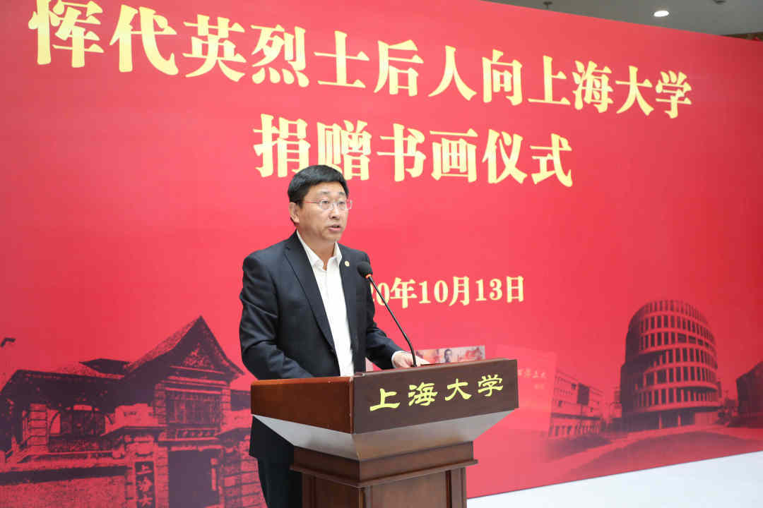 捐赠仪式在校史视频播放中拉开序幕。上海大学党委副书记欧阳华致欢迎辞。欧阳华表示,无论任何时候,无产阶级革命家恽代英这个名字,都是中国革命史、中国青年运动史上难以抹去的记忆。传承和弘扬以恽代英烈士为代表的革命先烈精神,不只是为了简单追怀,更在于启迪当下、烛照未来。