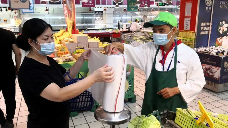 除了餐饮单位,新规留给商超的时间也不多了,按规定,明年起,他们不能再用一次性塑料购物袋。