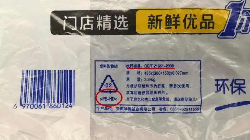 部分商户的塑料购物袋,主要原料是聚乙烯