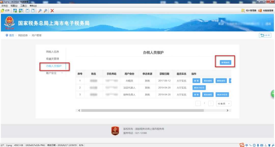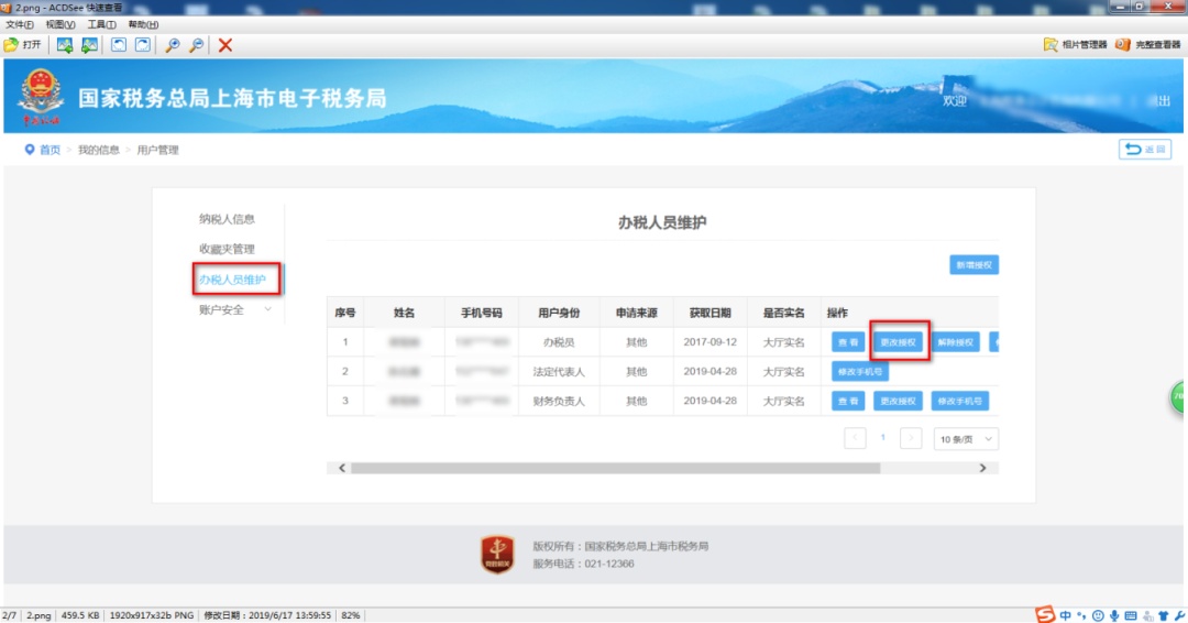 【上海市电子税务局】——【我的信息】——【用户管理】——【办税人员维护】